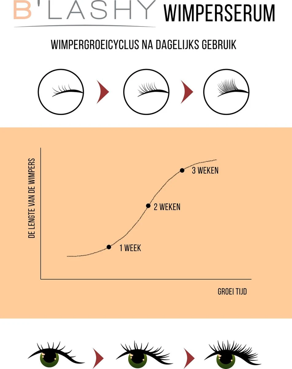Dit wimperserum is na zorgvuldig onderzoek naar de meeste effectieve ingrediënten zorgvuldig samengesteld. In het wimper groeimiddel van B’LASHY wordt met veel succes de werkzame stof Isopropyl Cloprostenate gebruikt. Dit in een combinatie van natuurlijke ingrediënten met peptiden. Bovendien hebben klinische studies hebben bewezen dat deze stof de haarwortels van wimpers (her)activeert en de groeifase van de wimpers verlengt. Tevens maakt het de haartjes langer, voller, glanzend en sterk. Isopropyl Cloprostenate is bovendien een werkstof die door de EU is goedgekeurd voor cosmetica.