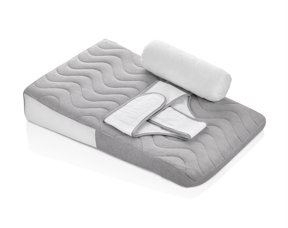 Het Baby Grijs Reflux Kussen van Babyjem helpt reflux en braken bij baby’s te verminderen/voorkomen. Het kussen heeft namelijk een helling van 15 graden, zodat het hoofdje van je kindje wat hoger ligt. Dit voorkomt dat het voedsel uit de maag terug omhoog komt.