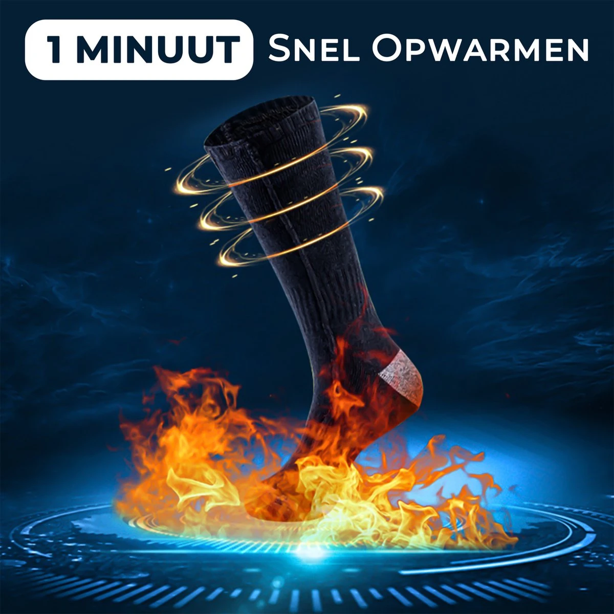 De sokken worden van stroom voorzien door de draagbare 4000 mAh powerbank en is eenvoudig op te laden via de meegeleverde USB-oplaadkabel. Dankzij het hoge accuvermogen kan de sokken tot 6 uur worden gebruikt op het laagste warmteniveau (30%), 4 uur op middelhoog warmteniveau (60%) en 2 uur op het hoogste niveau (100%).