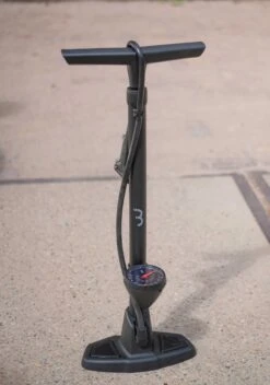 De BBB Cycling AirWave fietspomp BFP-20 is een compacte vloerpomp met drukmeter die is geschikt voor alle soorten ventiel. Op de drukmeter worden zowel bar als PSI weergegeven. De drukmeter is maar liefst 2,5 inch en is dus duidelijk af te lezen. De maximale luchtdruk van de pomp is 9 bar / 130 PSI.