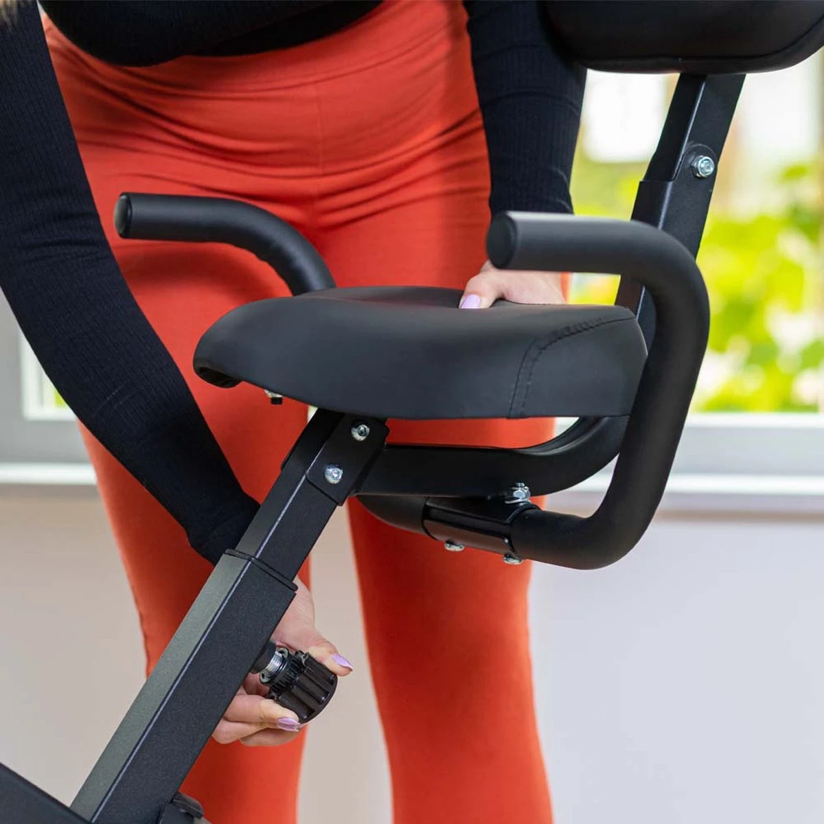 Om op verschillende niveaus te trainen kunt u kiezen uit 8 weerstanden. Deze weerstanden stelt u heel eenvoudig in dankzij de weerstandsknop onder het stuur. Ook is de hometrainer voorzien van extra weerstandsbanden voor armoefeningen. Zo traint u eenvoudig uw hele lichaam.