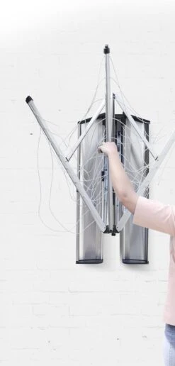 Nooit meer sjouwen of opruimen, eenmaal aan de muur bevestig met je met deze wanddroger altijd direct klaar voor gebruik. Met een soepele bediening met één hand, en 24 meter strakke drooglijn biedt voldoende ruimte voor een complete gezinswas! Met een hand klap je hem eenvoudig uit op 2 vierkante meters. Dit handige model – dat eenvoudig aan een muur bevestigd kan worden – neemt ook uitgeklapt maar heel weinig plaats in en kan heel compact ingeklapt worden. De beschermbox houdt de wanddroger WallFix schoon en droog indien je deze niet in gebruik hebt. De Beschermbox is gemaakt van weersbestendig materiaal en is makkelijk te openen.