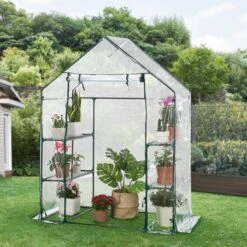 De grote foliekas met PVC-dekzeil is ideaal voor alle zelfvoorzienende en hobbytuinders. Dankzij de robuuste beschermfolie worden ongedierte en negatieve weersomstandigheden buitengesloten. Tegelijkertijd creëert de zon een ideaal klimaat voor de groei van de planten. Met deze broeikas wordt het kweken van groente en fruit op het balkon, terras of in de tuin kinderspel, ook zonder groene vingers. De constructie van gepoedercoate buizen is licht, duurzaam en snel op te zetten dankzij het plug-in systeem.