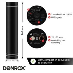 Pomp jij voortaan je ballen elektrisch op zonder inspanning tot exact de gewenste spanning? Met de compacte en draagbare Donrox Play B211 heb je altijd en overal jouw elektrische ballenpomp bij de hand.