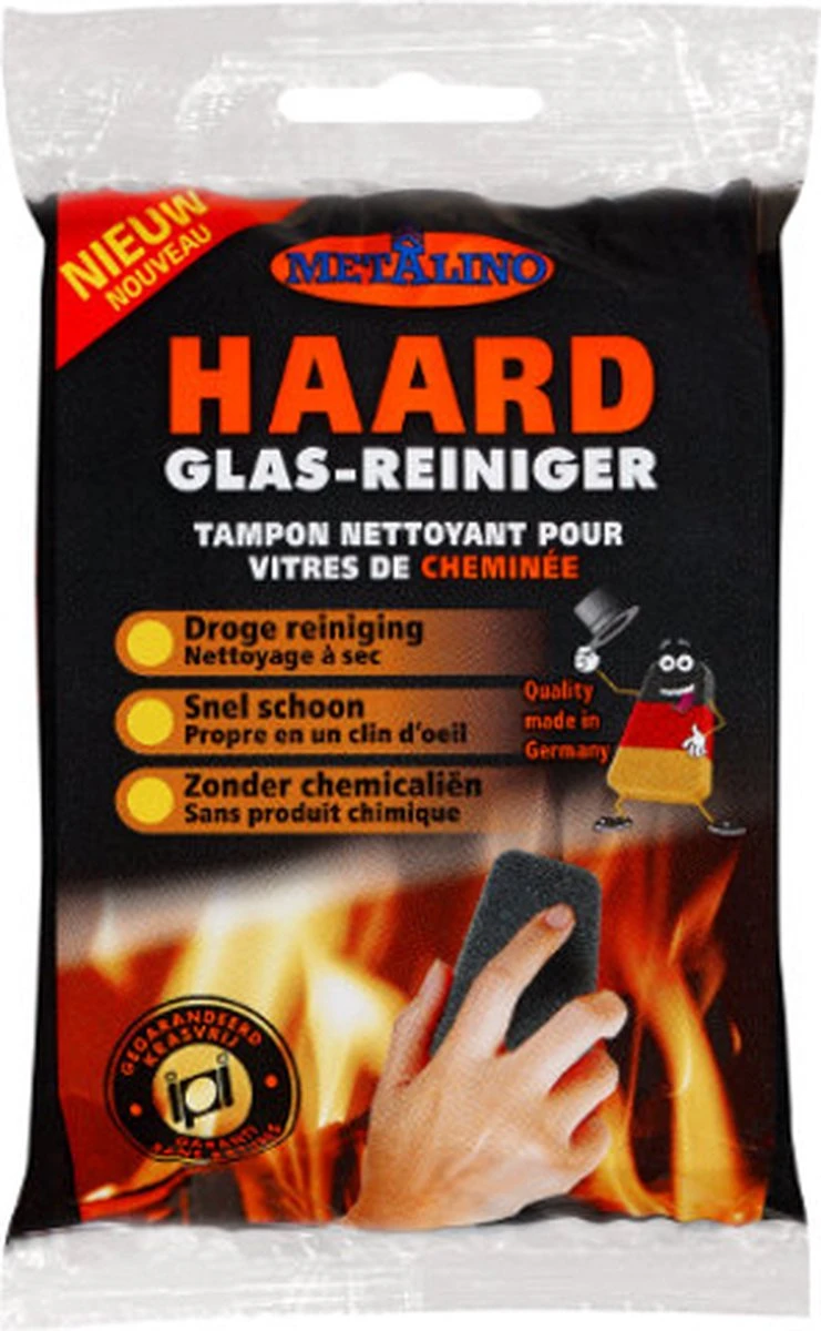 Het beste middel voor het schoonmaken van een kachelruit is staalwol (zonder zeep). Hiermee ziet u direct resultaat en u hoeft niet bang te zijn voor krassen, het glas is hier tegen bestand. Met deze Metalino haardglasreiniger verwijdert u snel en eenvoudig zwarte aanslag van uw kachelruit zonder chemische middelen, zonder water en zonder moeite. Gewoon de binnenkant van de haarddeur afwrijven en klaar!