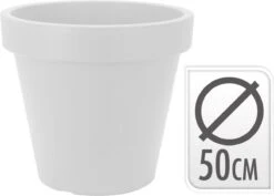 Bij de levering ontvangt u een prachtige ronde Bloempot met een diameter van 50 cm in het wit