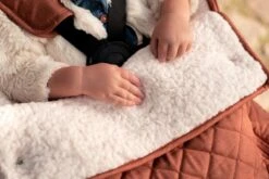 De voetenzak is voorzien van een super zachte stof en kun je eenvoudig omslaan. De afritsbare rits is super handig als je kindje wat verkoeling nodig heeft of als je, jouw kindje uit de buggy wilt halen.