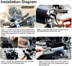 De teller wordt aangedreven door een kabel die verbonden is het as van je voorwiel. Het uiteinde van de worm is aan het meganisme gehaakt en wanneer het wiel draait, begint het wormwiel en de kabel te draaien en laat het mechanisme werken. De teller toont een snelheid tot 60 km/u en het totaal aantal afgelegde kilometers. Terwijl de wijzer van links naar rechts beweegt, moet de montage aan de rechterkant van het wiel worden uitgevoerd.
