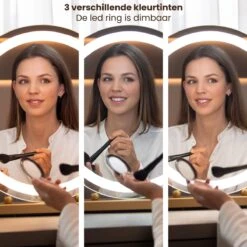 Met de Nuvoo make-up spiegel – Visagie spiegel – Hollywood spiegel met verlichting gaat je dagelijkse verzorging een stuk makkelijk en preciezer. Dankzij de LED ring lampen heb je licht dat precies op daglicht lijkt. Kortom, een multi-inzetbare spiegel voor hem en haar. Ideaal voor onder andere make-up, huidverzorging, scheren, epileren en lenzen.