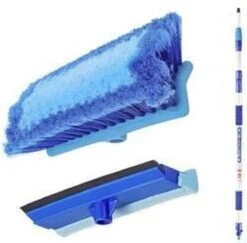 Deze wasborstel is ontworpen voor het zwaardere werk en is uitgerust met een telescopische steel die uitschuifbaar is tot 3 meter, waardoor je gemakkelijk bij moeilijk bereikbare plaatsen kunt komen. Het is ook uitgerust met een extra opzetstuk 2 in 1 raamtrekker 25cm en spons, waardoor je efficiënter kunt werken en tijd bespaart.