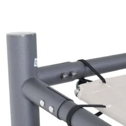 Specificaties• Afmeting: 282 x 214 x 285 x 400 (HxHxLxB). De hoogte is gebaseerd op de hoogte van de palen, het doek is bevestigd op ongeveer 10 cm onder de aangegeven hoogte, zie afbeelding.• Materiaal doek: 250 grams polyester• Materiaal frame: Staal met donkergrijze poedercoating