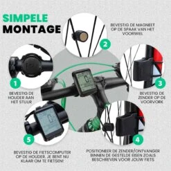 De draadloze en waterdichte fietscomputer is zeer gemakkelijk te monteren en te gebruiken. Alle benodigdheden worden natuurlijk meegeleverd, zelfs de batterij. We leggen je stap voor stap uit hoe je de draadloze fietscomputer monteert. Uiteraard wordt er ook een Nederlandse handleiding met de fietscomputer meegeleverd.