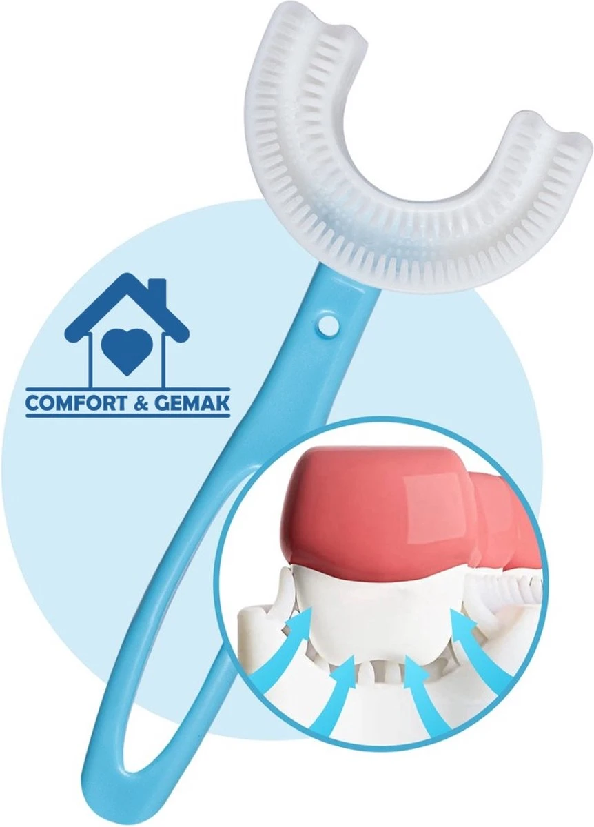Gemakkelijk de tanden poetsen van uw kind? Met deze tandenborstel kunt u de tanden en het tandvlees van uw kind goed en hygiënisch reinigen. Met deze speciale borstel worden de tanden in mond 360 graden gepoetst. Geen strijd meer met uw kind over het tandenpoetsen. Wel schone en gezonde tanden en gezond tandvlees voor uw kind.