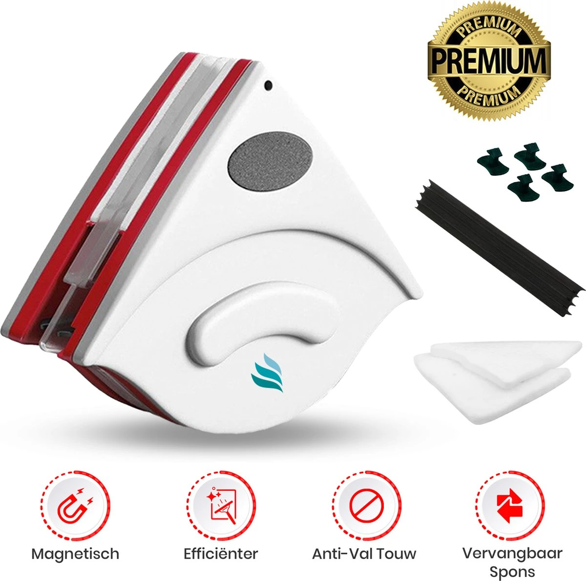 Pluspunten: Efficiënt en gemakkelijk schoonmaken Compact driehoekig ontwerp Krachtige neodymium magneten (pas op uw vingers) Bespaar tijd en geld op de glazenwasser Inclusief 2 extra sponsjes Inclusief 4 extra verbindingsdopjes Anti-valtouw Geschikt voor dubbelglas (15-24 mm)