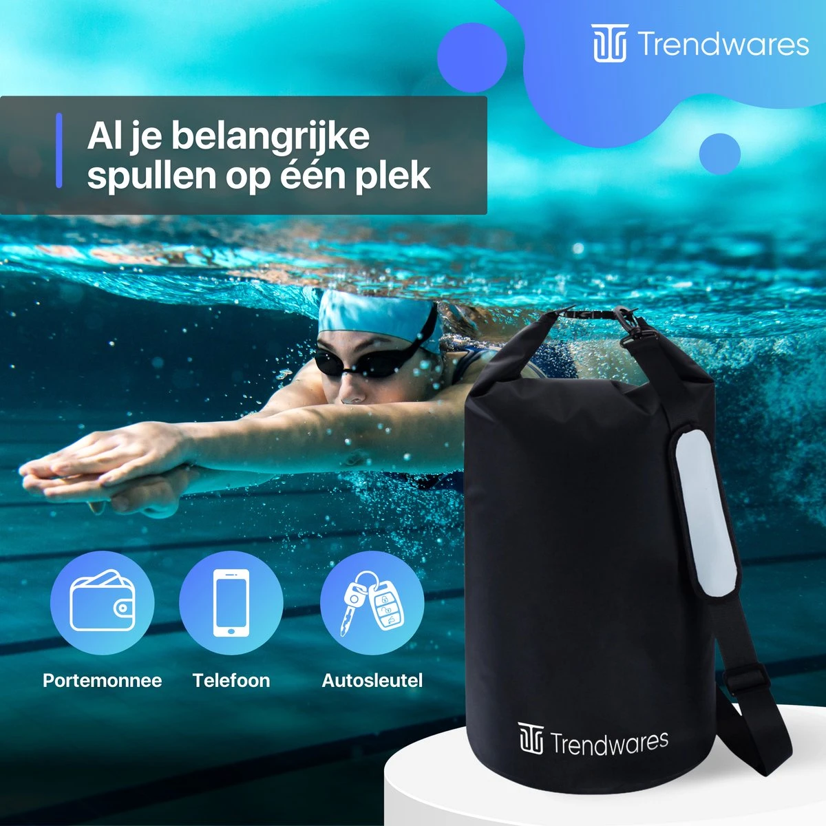 Trendwares – Drybag – Strandtas – Waterdichte tas – Droogtas – Rugtas – Survival outdoor tas – 20 liter – Zwart